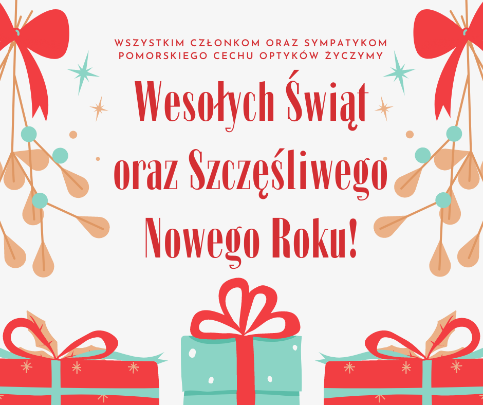 Członkom Pomorskiego Cechu Optyków, Sympatykom oraz naszym Kursantom życzymy wyjątkowych i zdrowych Świąt Bożego Narodzenia, a także wszystkiego najlepszego w Nowym Roku!